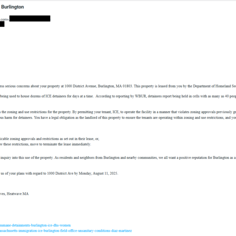On August 9th, we received an informal communication from a person in the Burlington town government, telling us that Murray's lawyers and ICE's lawyers had collaborated to deny the town access for an inspection. We do not have documentation or a confirmation of this claim.